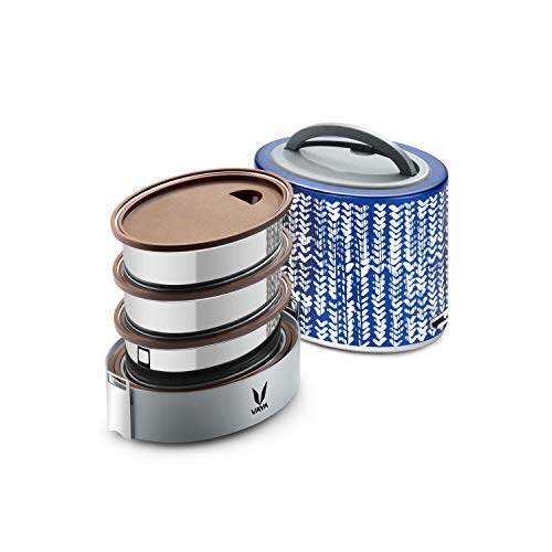 Tyffyn Jumbo Black Polished Stainless Steel Lunch Box Without Bagmat, 1300 ml, 4 Containers, Black