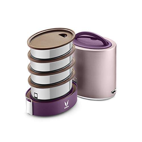 Tyffyn Jumbo Copper-Finished Stainless Steel Lunch Box Without Bagmat, 1300 ml, 4 Containers