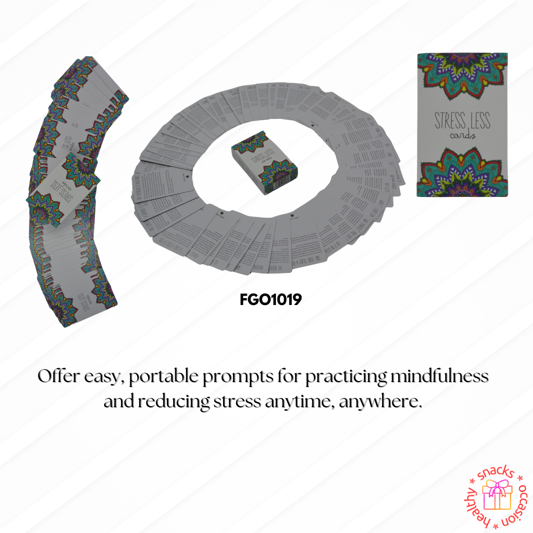 Discover the Stress Less Cards, featuring 50 mindfulness meditation exercises designed to reduce stress and anxiety. Each card offers a unique practice to promote relaxation and inner peace, making it easy to incorporate mindfulness into your daily routine. Perfect for use at home, work, or on the go, this original deck is your essential tool for enhancing mental well-being and fostering resilience. Unlock the power of mindfulness and take a step towards a more serene and balanced life.